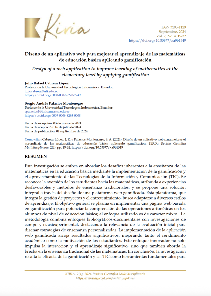 Esta investigación se enfoca en abordar los desafíos inherentes a la enseñanza de las matemáticas en la educación básica mediante la implementación de la gamificación y el aprovechamiento de las Tecnologías de la Información y Comunicación (TIC). Se reconoce la aversión de los estudiantes hacia las matemáticas, atribuida a experiencias desfavorables y métodos de enseñanza tradicionales, y se propone una solución integral a través del diseño de una plataforma web gamificada. Esta plataforma, que integra la gestión de proyectos y el entretenimiento, busca adaptarse a diversos estilos de aprendizaje. El objetivo general se plasma en implementar una página web basada en gamificación para potenciar la comprensión de las operaciones aritméticas en los alumnos de nivel de educación básica; el enfoque utilizado es de carácter mixto. La metodología combina enfoques bibliográficos-documentales con investigaciones de campo y cuasiexperimental, destacando la relevancia de la evaluación inicial para diseñar estrategias de enseñanza personalizadas. La implementación de la aplicación web gamificada arroja resultados significativos, mejorando tanto el rendimiento académico como la motivación de los estudiantes. Este enfoque innovador no solo impulsa la interacción y el aprendizaje significativo, sino que también aborda la brecha en la enseñanza tradicional de las matemáticas. En conclusión, la investigación resalta la eficacia de la gamificación y las TIC como herramientas fundamentales para transformar la educación básica en matemáticas, proporcionando una alternativa innovadora y centrada en el estudiante.