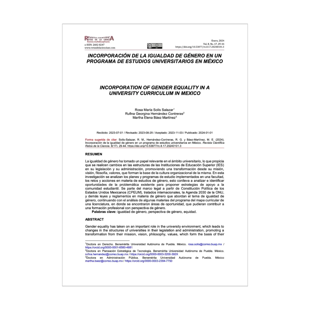 Incorporación de la igualdad de género en un programa de estudios universitarios en México